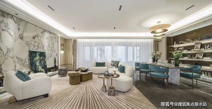 「央境190㎡」户型设计之初,LDK一体化餐客阔厅,创造出高频互动的“家庭中心”, 创新性大洄游格局,当主人归家缓缓而至,大气场面不经意间流淌开来,带来视野上的纵深感和冲击感,潜移默化间赋予了一种大家风范的归家礼序。