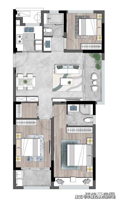 D:建面约120平户型亮点:
