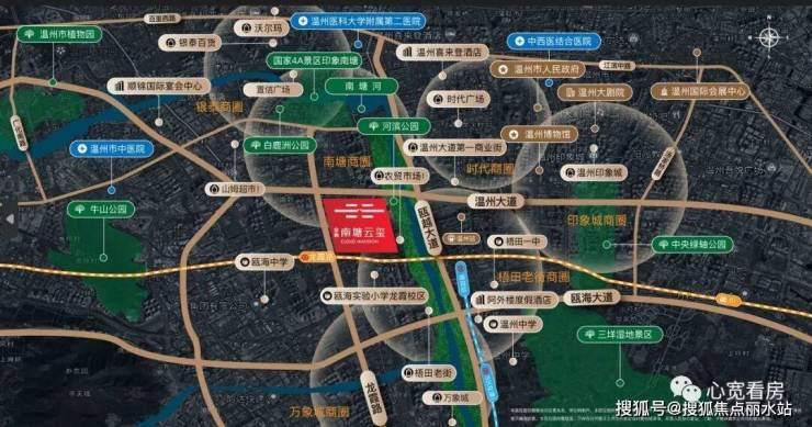 毋庸置疑,本项目所在的南塘南板块,是温州向南发展的第一站。如图,南塘南板块位于温州城区的正中央位置,板块价值不言而喻。