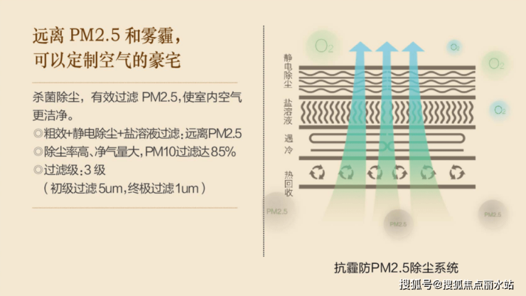 除尘率高,净气量大,夏季全屋空气的置换频率达到0.7次/小时,冬季0.5次/小时,每天室内空气可循环多达19次。在春秋金茂府,客户完全不需要像之前在传统住宅里那样,为了通风开窗、开门,安装空调、排气扇、净化器,并因此担心二手烟、家电进灰、皮具受潮等生活琐事上的细枝末节。