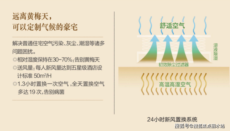 为了让居家者即便在封闭的室内也能享受到洁净空气,春秋金茂府采用的是12大科技系统中功能最复杂、最重要、技术含量最高的24小时置换新风。配合抗雾霾PM2.5系统,湿度调节系统,它可以在监控户内湿度的同时,将室外新鲜空气经过多重净化处理和调温后从地埋风管送入室内,通过房屋顶部排风口直接将室内污浊空气排到室外,并做到无交叉感染。