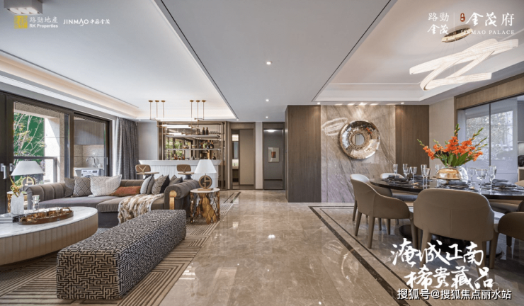 作为顶豪级的产品,春秋金茂府在空间方面的营造自然是尤为卓著。比如户内中心近65㎡的客厅,在约7米面宽与3.15米层高的加持之下,做出了奢阔至极的双横厅,如此堪比独栋的尺度,在整个常州都极为少见。
