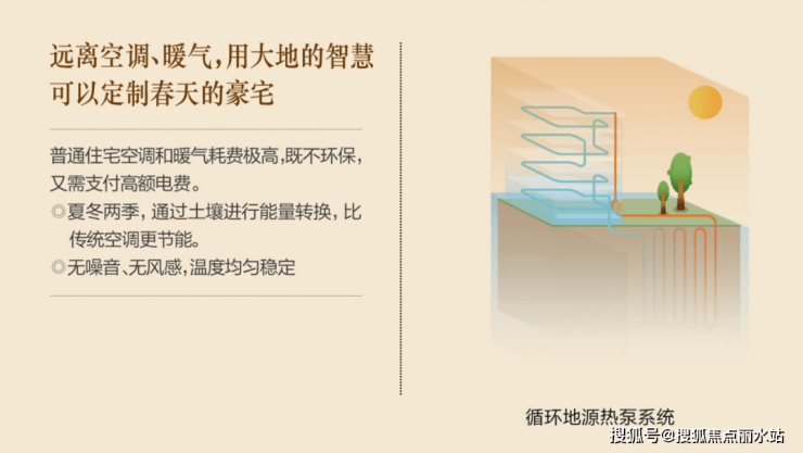针对这一生活痛点,春秋金茂府通过地源热泵系统,利用地下恒温层进行冷热交替,以此保证室内温度恒定。再加上毛细管网辐射系统、高效外墙屋顶地面保温系统、Low-e中空玻璃隔热系统这几大恒温系统的辅助,一楼阴冷、顶楼烤热,能量流失过快、风口直吹伤害等问题也被一并解决,使得“夏季约24-26℃,冬季约20-22℃,不用空调不用地暖,室内可以365天做到四季如春”不再只是泛泛而谈。
