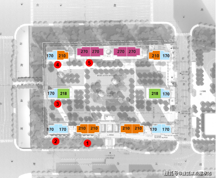时代·滨江瑧品整个项目占地约70.8亩,容积率3,规划有10栋高层和一栋高约220米的超高层,这么大的体量下,只做了区区400余套。围合式布局,呈现大间距、大中庭的形态,东西间距约127米,南北间距约105米,堪称大手笔的规划布局。园区形成了约1.3万㎡巨幕中庭景观,处处皆风景。