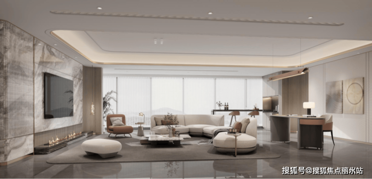 以水面反射时的波光感作为灵感,通过弧形曲面与灵动线条设计,让建筑立面随江面波涛与光影变幻呈现波光幻彩的浪漫,在瞰瓯江、拥地标、揽万象的格局之上,立面也能自成风景。项目配置建面约170㎡、建面约210㎡、建面约218㎡、建面约270㎡四款户型,主力面积定位在210㎡,加上约3.15米的层高,大宅气质自显。