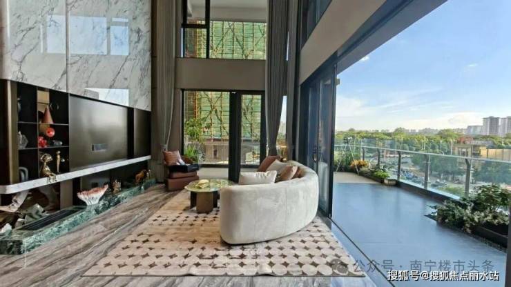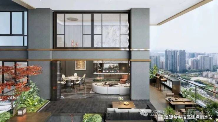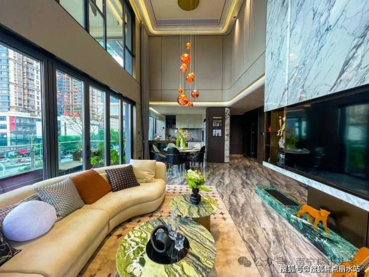 其高度也保持了6.2米的挑高,约38-41m²的露台空间,与餐客厅形成了“内厅+外厅”的组合,把私家花园迎入户内。