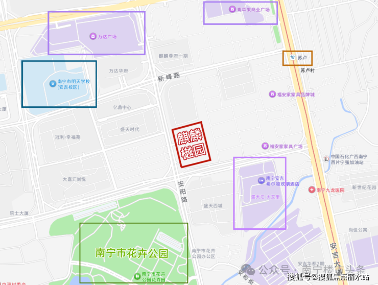 就拿麒麟樾园的位置来说,项目位于安阳路与吉兴西路交汇东北侧,北有安吉万达广场,南有盛天汇大又里,东拥地铁2号线苏卢站,西临明天学校安吉校区。