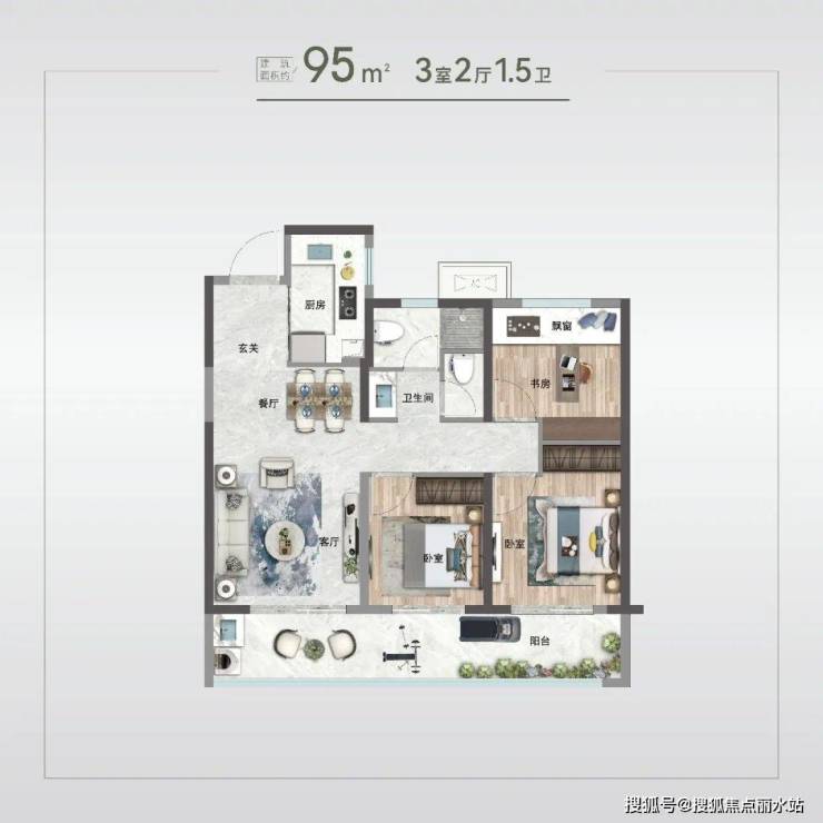 【得 房 率】:1#楼73%左右;2#楼74%左右