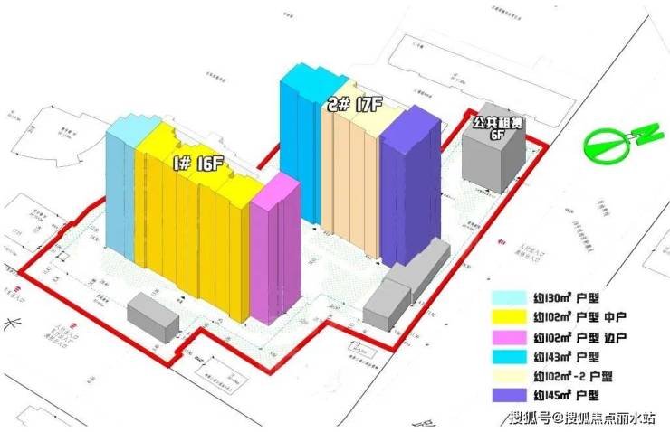 根据项目规划设计方案,项目拟建2幢16~17F高层及1幢公租房。户型方面预计将推出建面约102-145㎡3-4房。