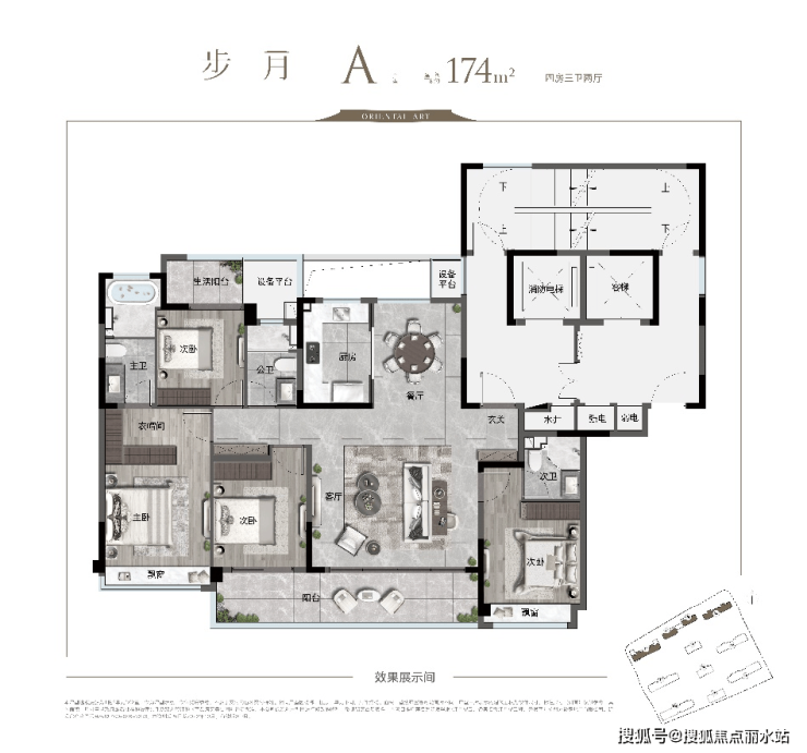 项目主力户型建面约174-255㎡,均为大平层设计,确保了居住的高端品质。户型设计上注重南北通透、采光充足,所有户型均实现了朝南四面宽的设计,且绝大多数户型都拥有南向江景客厅。