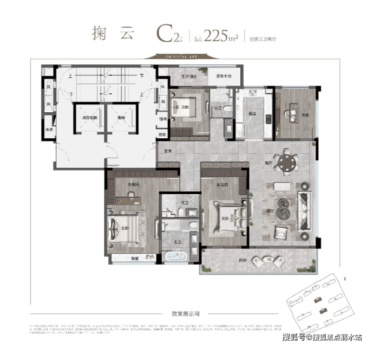 客厅通铺的石材和大面的岩板,气派非凡。主卧各个功能区的尺度都非常的豪横。其中主卧开间约4.4米,南向主卫有约11个平方,奢华的不得了。硬包背景墙丝绸缎面的质感太棒了,素淡而高雅,可以与各种家具搭配,彰显了中式讲究韵味和意境的真谛。