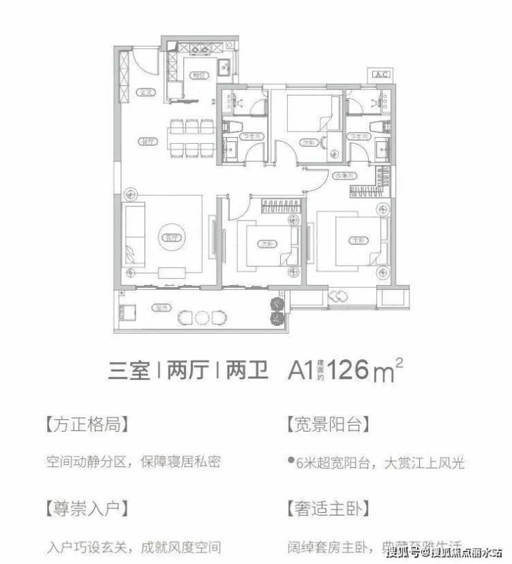 我们126㎡户型产品享6.5米超大开间的南向观景阳台,直面1.6万方中央园林,视野更开阔;