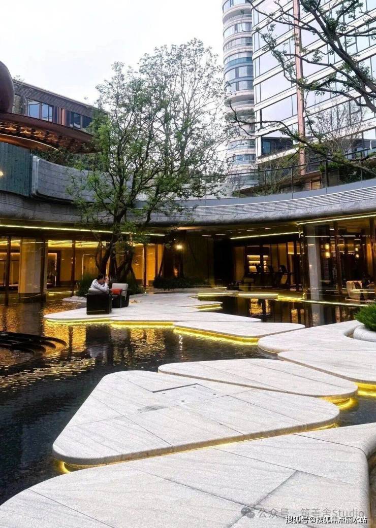 复刻《江汉揽胜图》精髓,引水入园,精心打造全龄社交场景与多维垂直园林,实现“一步一景一社交”的沉浸式归家体验,让每一步都穿越艺术与自然的双重魅力。宝格丽绿奢石墙之上,垂直叠瀑倾泻而下,形成4米壮丽水幕,溪水潺潺汇入安哥拉黑池底,化作灵动玉带。漂浮汀步巧妙衔接会所内外,既震撼视觉,又串联空间。30年乌桕树王伫立庭院,守护一方宁静,每一块玉石铺装皆蕴含《周礼》六器礼序,将“水与玉”的东方哲思融入日常步履之间。