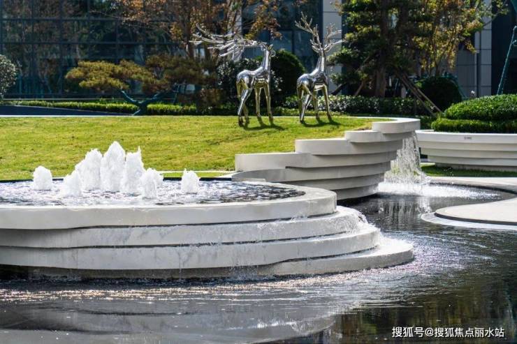 脚踏石板,闻水而行,眼前是纯白交叠的绿岛、飞跃而下的流水、灵动温顺的小鹿,仿佛一步入森林,自然在这里苏醒,将视线引入园中,预示一场归心之旅的开启。