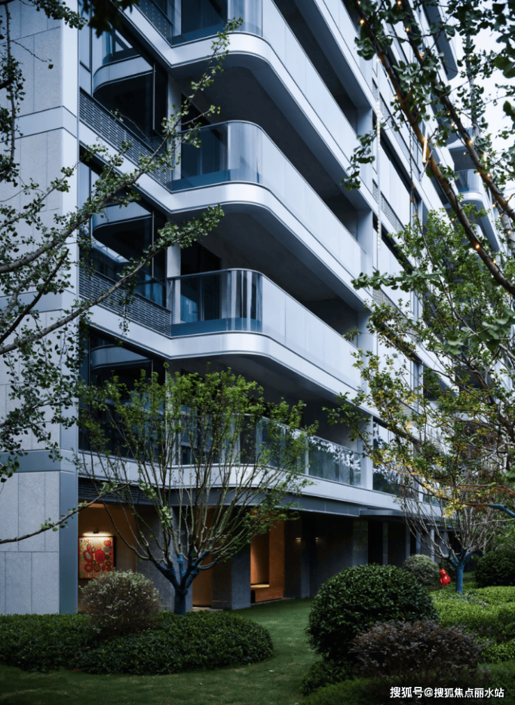 四季辰院的外立面,以大面积玻璃搭配高级灰铝板及大理石,结合现代极简线条的勾勒,这种浅色系的雅致,与高窗墙比的清透,瞬间将建筑的高级感展露无疑。其中大理石采用的是“美国白金石材”,这是一种常用于的豪宅的高端大理石品种,可以说是不惜成本。