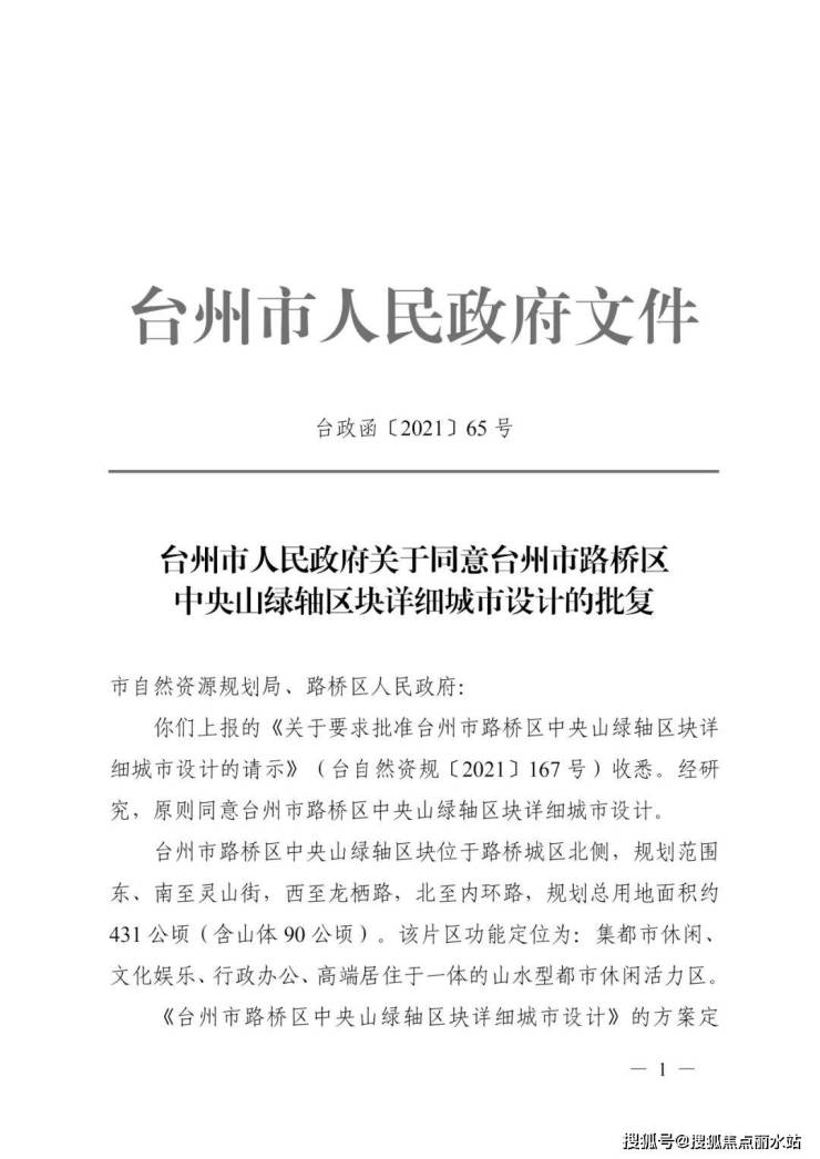 2021年,《台州市路桥区中央山绿轴区块详细城市设计》正式发布。根据规划,未来中央山绿轴板块将打造为:集都市休闲、文化娱乐、行政办公、高端居住于一体的山水型都市休闲活力区(信息来源:台州市自然资源和规划局网站)。