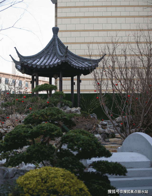 叠墅入口处,更是呈现一派典雅风华,矮墙古朴,楼栋隐现其间,与繁茂绿植景观相映成趣。亭台一角,静谧雅致,犹如画中景,尽显东方韵味。
