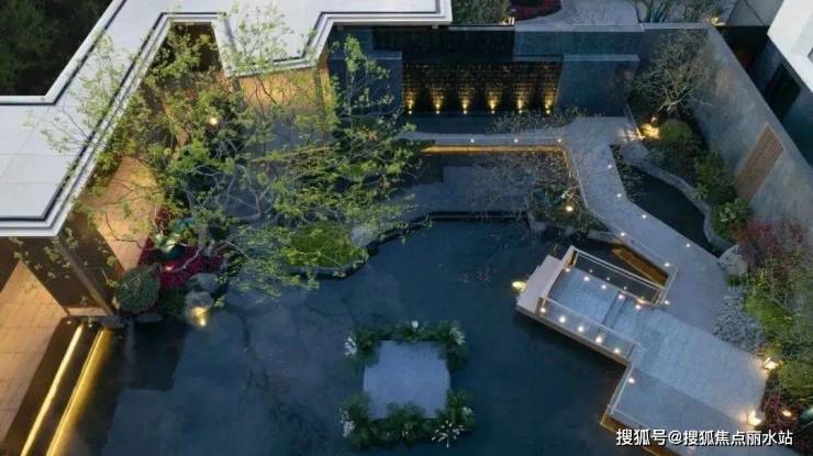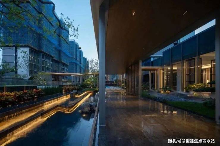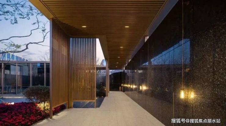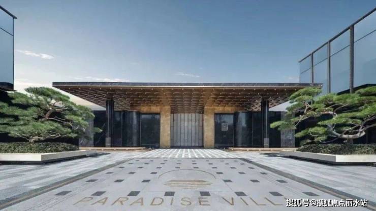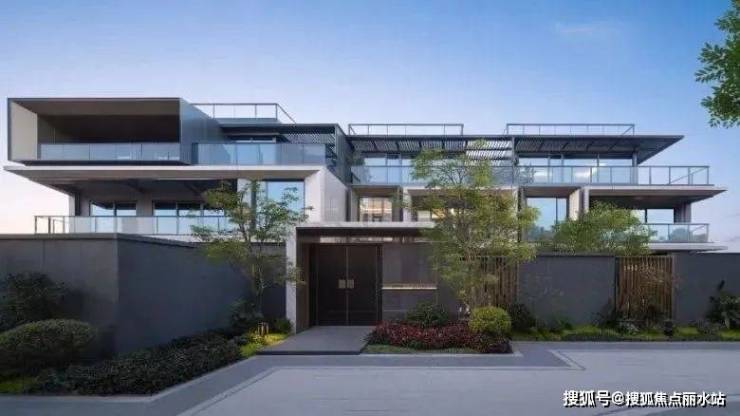 在现代排屋示范区,天台文脉、东方山水精神与现代豪宅生活美学有机融合,云集山水通过连廊的巧妙串联水景、景墙、亭台,构建起全景式山水园林景观。黑白交错的建筑盒体,仿铜色的铝板与南入口门头的铜板遥相呼应,成就排屋产品的高雅特质。