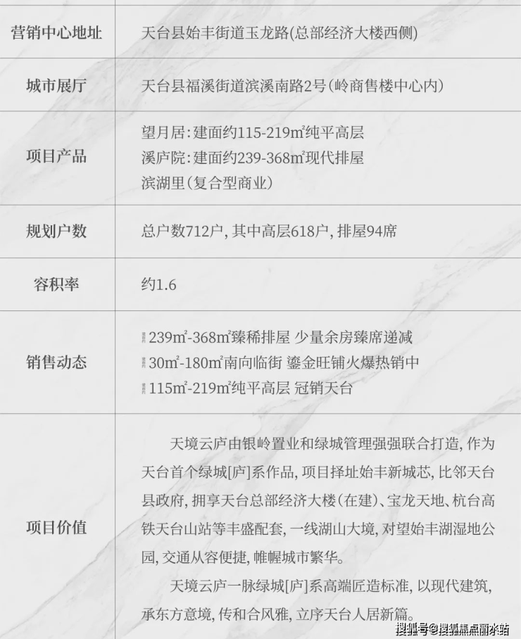 正是基于强大的品牌力、迭新的产品力以及贴心的服务力,银岭绿城·天台天境云庐全面赢得市场认可,引爆一次又一次热销。截至目前, 银岭绿城·天台天境云庐 已连续6次登上台州热销十强榜,稳居天台销量第一 (数据来源于天台房管网) ,这座为天台量身建造的“好房子”全面落地生根。