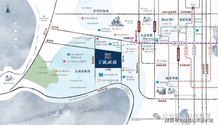 区域内高新产业、5A景区、太湖中心mall(现已开业)大型商业、品质教育集萃,城市资源要素承载之地,地脉价值不彰自显。