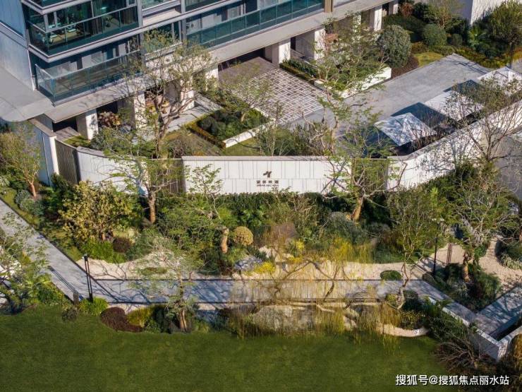 比如,已经实景呈现的7号楼,主打「邻里互联+club med」的主题敞开式架空层,包含了休憩、会客、阅读空间,搭配上枯山水造景,景观和架空层交融,互为风景。