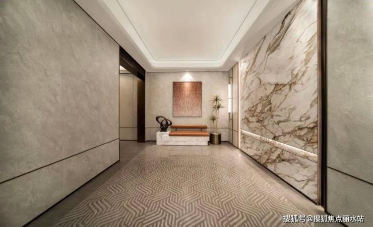 就连地下大堂顶部也有仿透光云石灯,这可是市中心豪宅才有的配置啊。