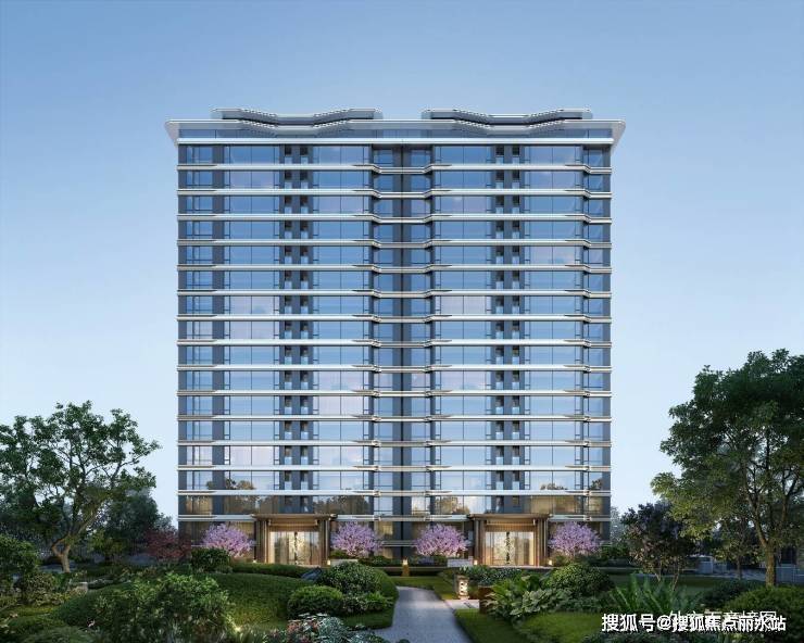 ▋ 超流体美学立面:区域新房仅有景观阳台封窗,配以弧形铝板线条,豪宅外立面即视感。