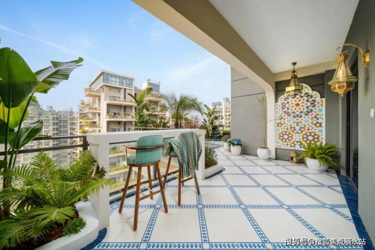 还有像长沙保利和光尘樾108㎡户型,露台作为阳台的局部延伸空间,面积也比较小,但是和阳台连接后,也可以打造一个实用性很强的情景空间。