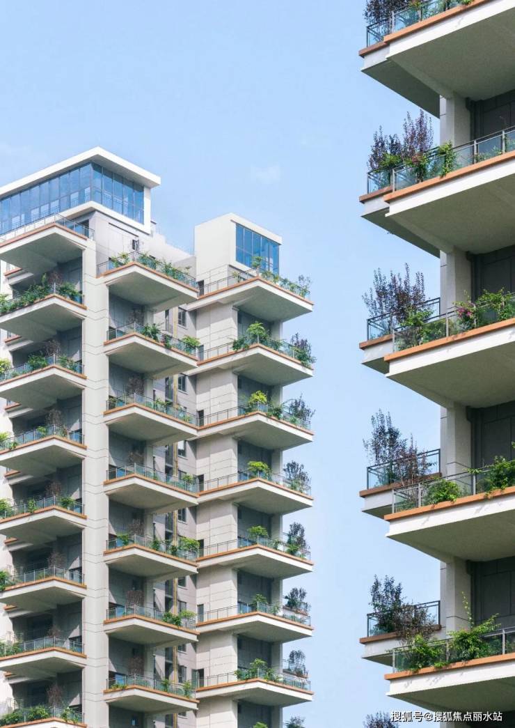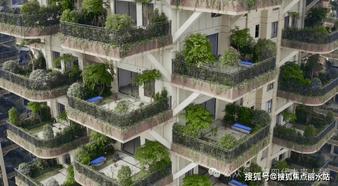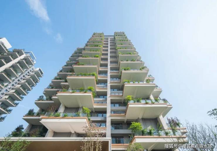 远远望去,住宅中垂直花园奇数层和偶数层错开;前后阳台的交相呼应,构成前庭后院。当森林”化融入住房,最大化的实现了空间与家庭的互动。