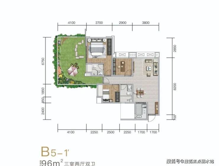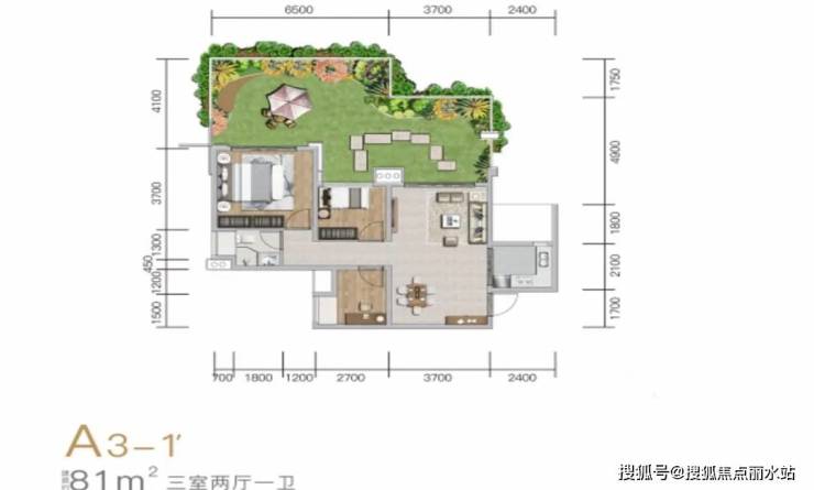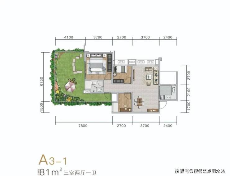 该楼盘主力户型集中在 81㎡、96㎡左右,其中建面约 81㎡的三房产品亮点突出 —— 北侧与左侧配备超大空中庭院,进深达 4.1-4.9 米,开间超过 10 米,户外拓展空间面积几乎与室内使用面积相当,实现 “室内外空间近乎 1:1” 的居住体验。