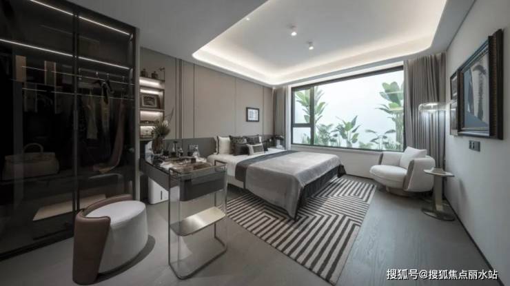 项目的143㎡户型,卧室270度环幕视野、采光,再结合三面落地玻璃幕墙,让约31㎡U型浮空全景主卧,犹如置身于一座“光之屋”,通透性拉满。双排步入式衣帽间,进一步提升居住舒适性。