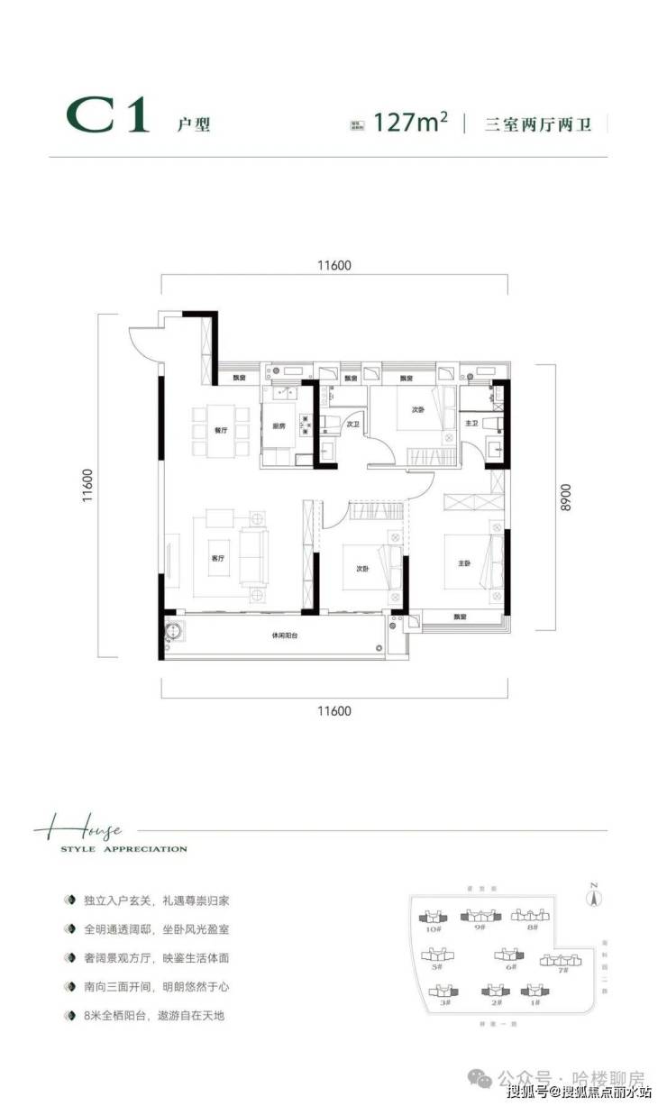 建筑面积约127㎡三室两厅两卫 越级空间奢享无边