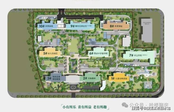 ◤一栋一座泛会所 24H全龄社群空间◢ 1#儿童运动:分龄段打造体验感成长乐园,孩子探索世界的勇气从这里起步。2#文娱康体:专为长者打造的康体空间,在与邻里的交流中重拾青葱岁月。3#第三空间:打造商务会客、瑜伽健身等多重场景,赋予社区生活丰富精神内涵。5#幼儿活动:专为0-6岁幼儿打造的感官训练区,童年成长的第一课堂。6#四点半学堂:家门口的综合素质教育服务中心,陪孩子成长,让家长放心。7#手工作坊:寓知识于手工游戏中,以不灭的童心探索世界的新奇。8#共享驿站:打造生日派对、主题市集、小剧场等场景,升温邻里,塑造社区“邻聚力”。9#青年社交:提供全天候的社交生态圈,以热爱为基底,让相同的灵魂在此相遇。10#共享会客:提供商务会谈、朋友会面、访客等待等功能,让有温度的连接弥漫社区。