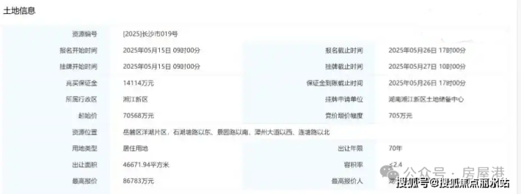 该项目正是今年5月份,经过24轮激烈竞价最终由嘉信地产以86783万元成功竞得的[2025]长沙市019号地块(即洋湖H492地块),折合楼面价约7748元/㎡,溢价率近23%。