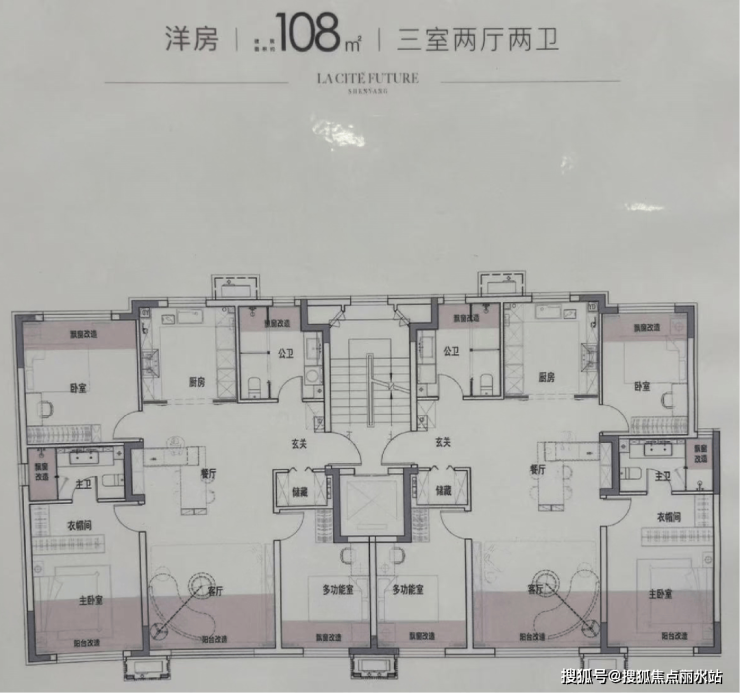高层均为108㎡(中间户106㎡),格局大体一致;