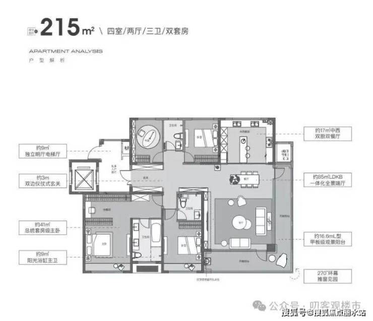 层高:标准层高3.05m 、175㎡以上3.15m