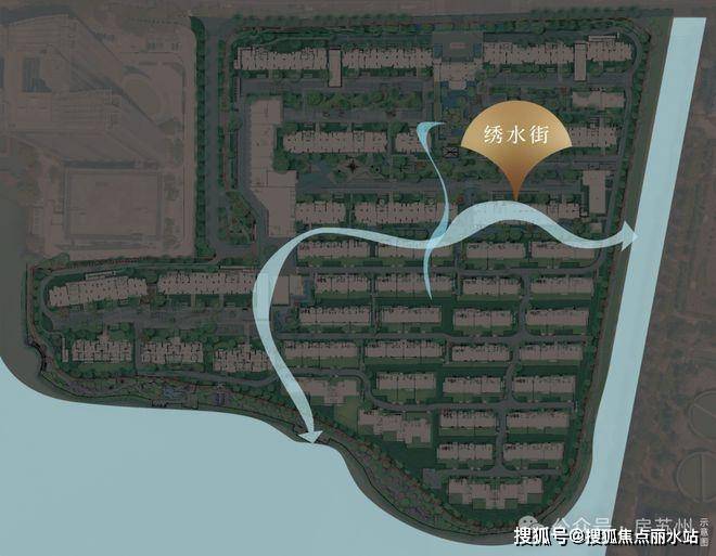 园林师法苏州园林以内外水系为主轴于外,营造了一套约460米的滨水景观绿堤,再现"枕水而居”的千年形制。