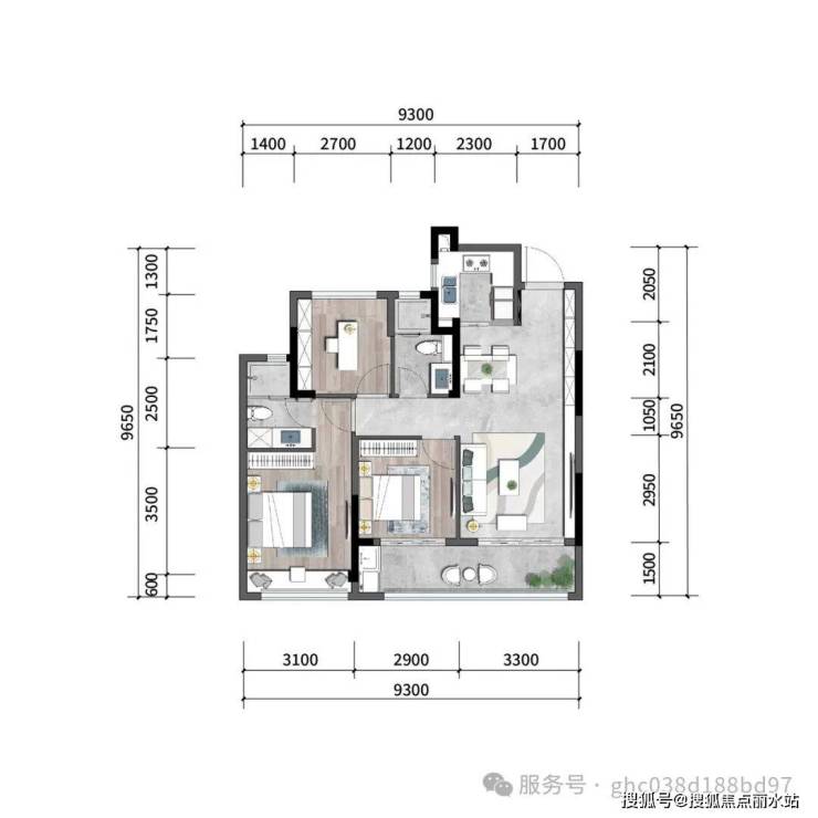 1. 约9.3米南向面宽+约6.2米南向双阳台布局