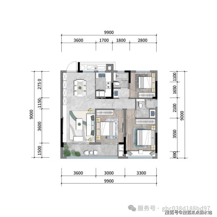 1. 约9.9米南向面宽,约6.6米南向双阳台布局