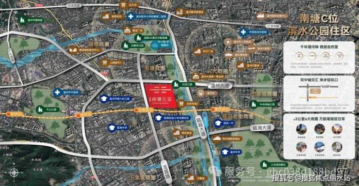 南塘云玺所处的南塘板块,东西连接绿轴与瓯海中心区,依托温州大道,连接温州市中心大小南门、五马街商圈,坐拥南塘商圈、银泰商圈、时代商圈、梧田老街、印象城商圈、万象城商圈等。