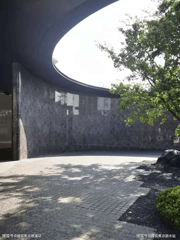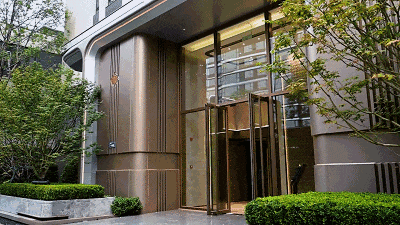 旭辉·铂悦公望入口深灰色外墙,沉稳厚重的质感彰显了社区尊贵的气质。大隐之境,隔绝城市喧嚣,步入大门即刻回归宁静。