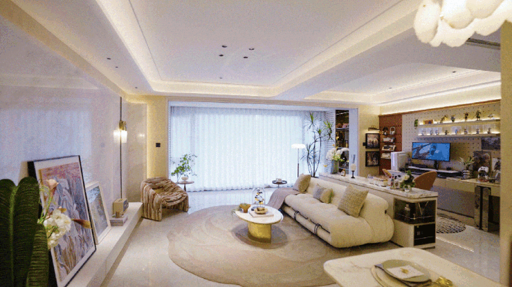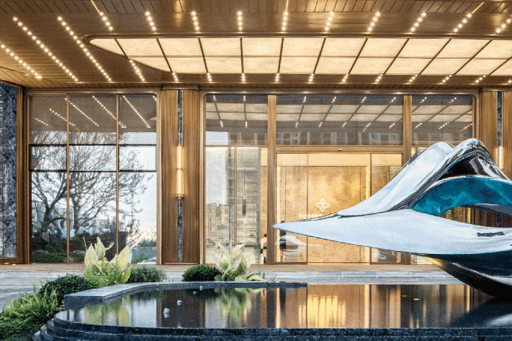 从宏观到微观,建筑以艺术品的逻辑诞生。弧线流体立面历经12稿方案打磨,将直角蜕变为自然水流的曲线;星空穹顶车库以环氧磨石地坪与艺术灯光颠覆地下空间压抑感;细节更显苛求——5mm不锈钢门框收边,横跨12省甄选百年朴树,536块顶级岩板严苛择一,5万粒小料石均手工锤凿,镜面雕塑历时145天人工雕琢,20多稿比选定制独一无二的灯光艺术,天然云石吊顶、弧形防撞阳角......每一处精工皆是招商蛇口对品质匠心的坚守,更吸引300+单位同行参观研学。
