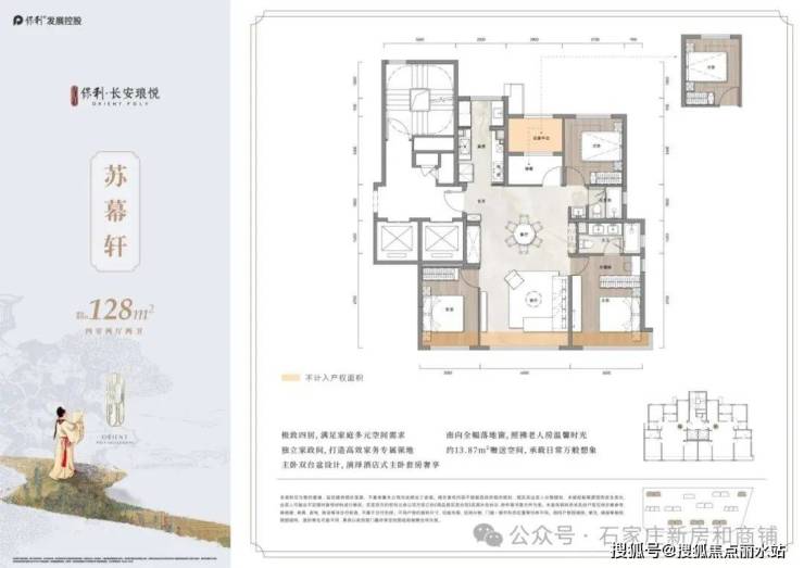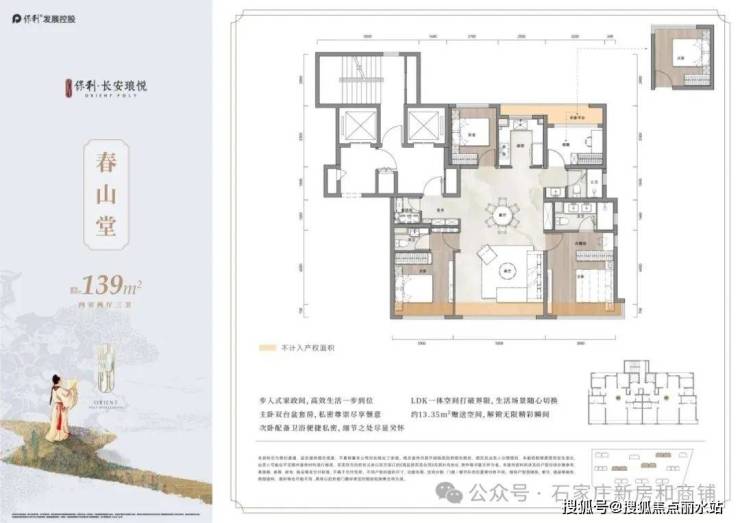 125平户型赠送了飘窗和设备平台,打造成四室两卫户型,满足了改善型购房者对于空间的需求。户型设计合理,赠送面积多,实际得房率较高,且有小面积户型,总价低,无论是刚需购房者还是刚改客户都能在这里找到适合自己的家。
