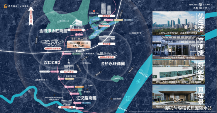 汉口 “ 扁三环 ” 的格局下,项目距汉口 CBD 直线距离约 5 公里;距离 2 号线地铁口约 50 米, 4 到 6 站直达汉口火车站、汉口 CBD 、天河机场; 3 公里范围内两家永旺商业体,一路之隔约 3.3 万方壹站城商业街,烟火气扑面而来;梧桐雨公园、黄塘湖公园、极地海洋公园和金银潭公园,把宜居值直接拉满。