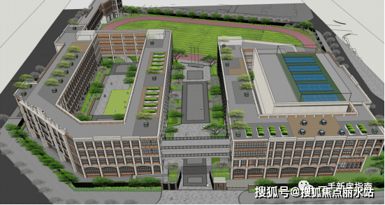 公共空间:食堂、室内体育馆、屋面运动场、室外球场为共同使用空间,其中室外运动场为300米跑道