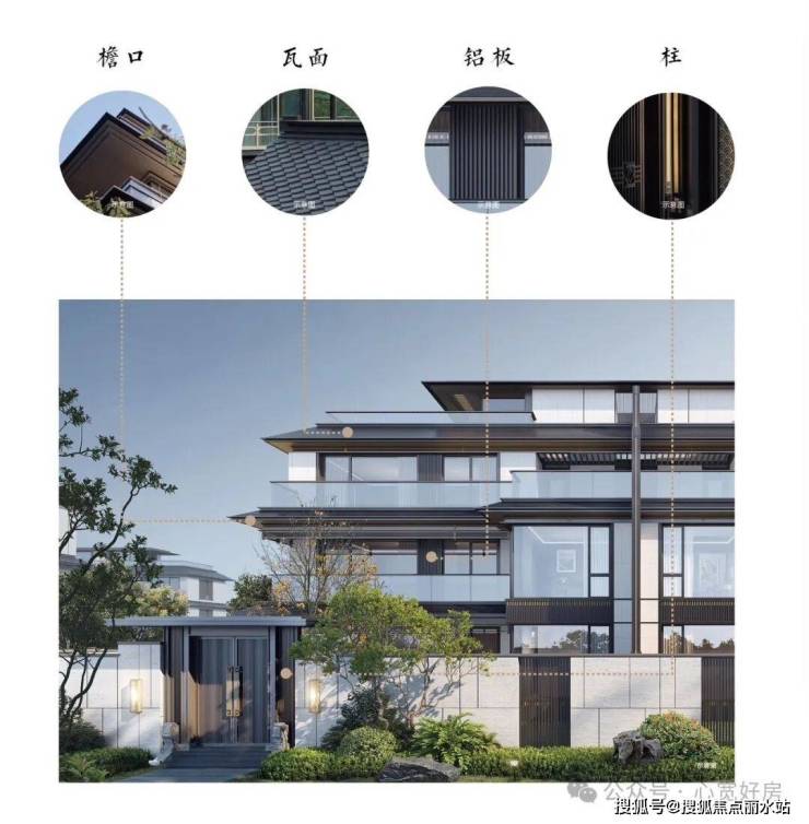 将东方坡屋顶与现代风格融合,石材铝板玻璃立面,素净极简的优雅线条,超大窗墙比设计,建筑轻盈通透,简洁中韵含古意,鼎立独“墅”温州的美学经典。