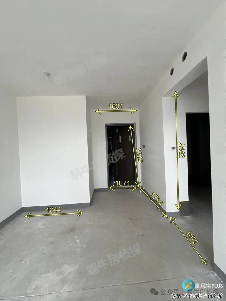 室内各个房间实测数据已经标注好了!各个房间的墙面已经刮好了大白!地面还没有进行施工!室内看起来还是比较干净的!