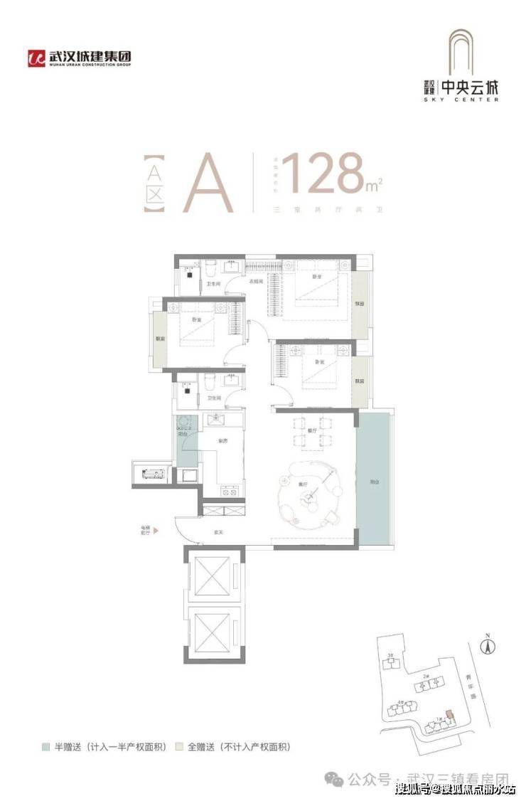 A区3号楼新品低公摊臻品四房:建面约181平米