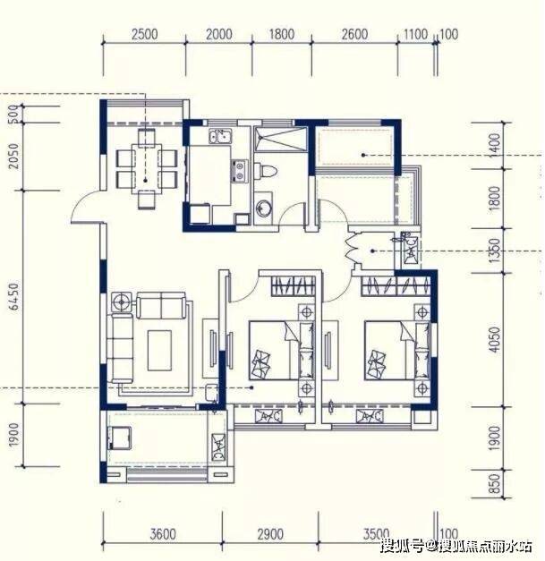 华发未来城105平米的合院,改造之后,做出了4房,其中3个是套房,完全可以满足三代同堂的居住需求。