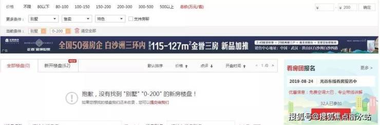 上图是某网站的搜索结果,武汉200万以下的别墅项目数为0。
